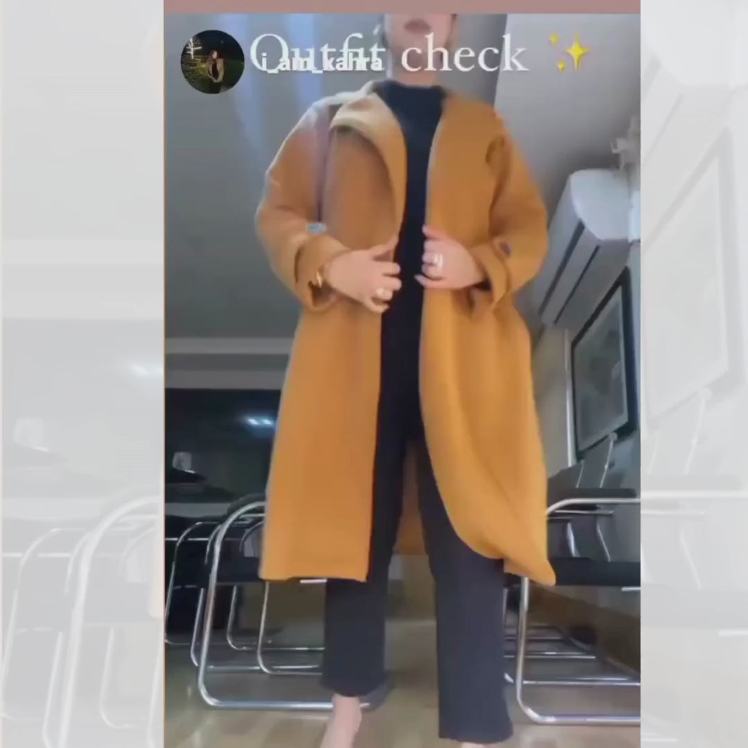 LY-0023 Bloom's Long Fleece Trench Coat For Women's