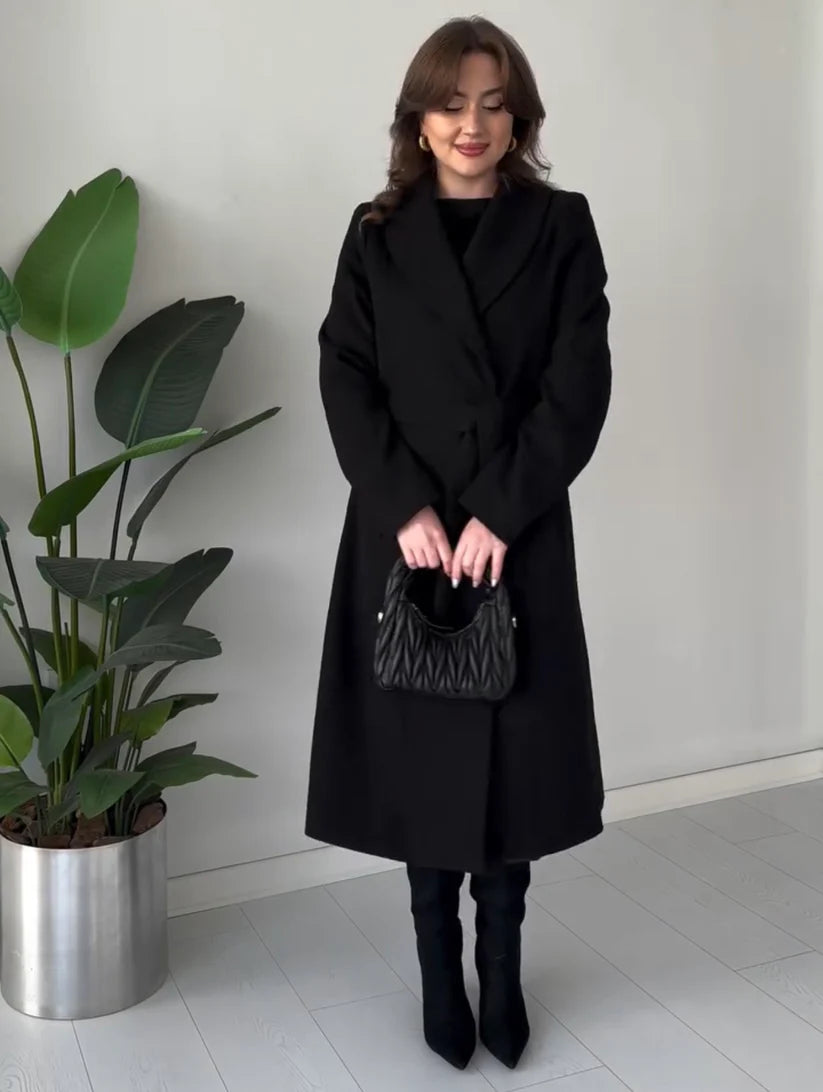 Featuring a 42-inch length, belted waist, and classic lapel design, this coat adds a timeless charm to your winter wardrobe. Perfect for daily wear, work looks, or evening outings.